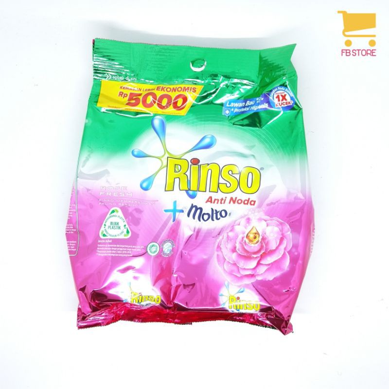 rinso bubuk anti noda + molto 240g kemasan ekonomis 5000 rose fresh.kami menyediakan pembelian bubble wrap agar pengiriman lebih aman.harap menanyakan ketersediaan stock sebelum mem