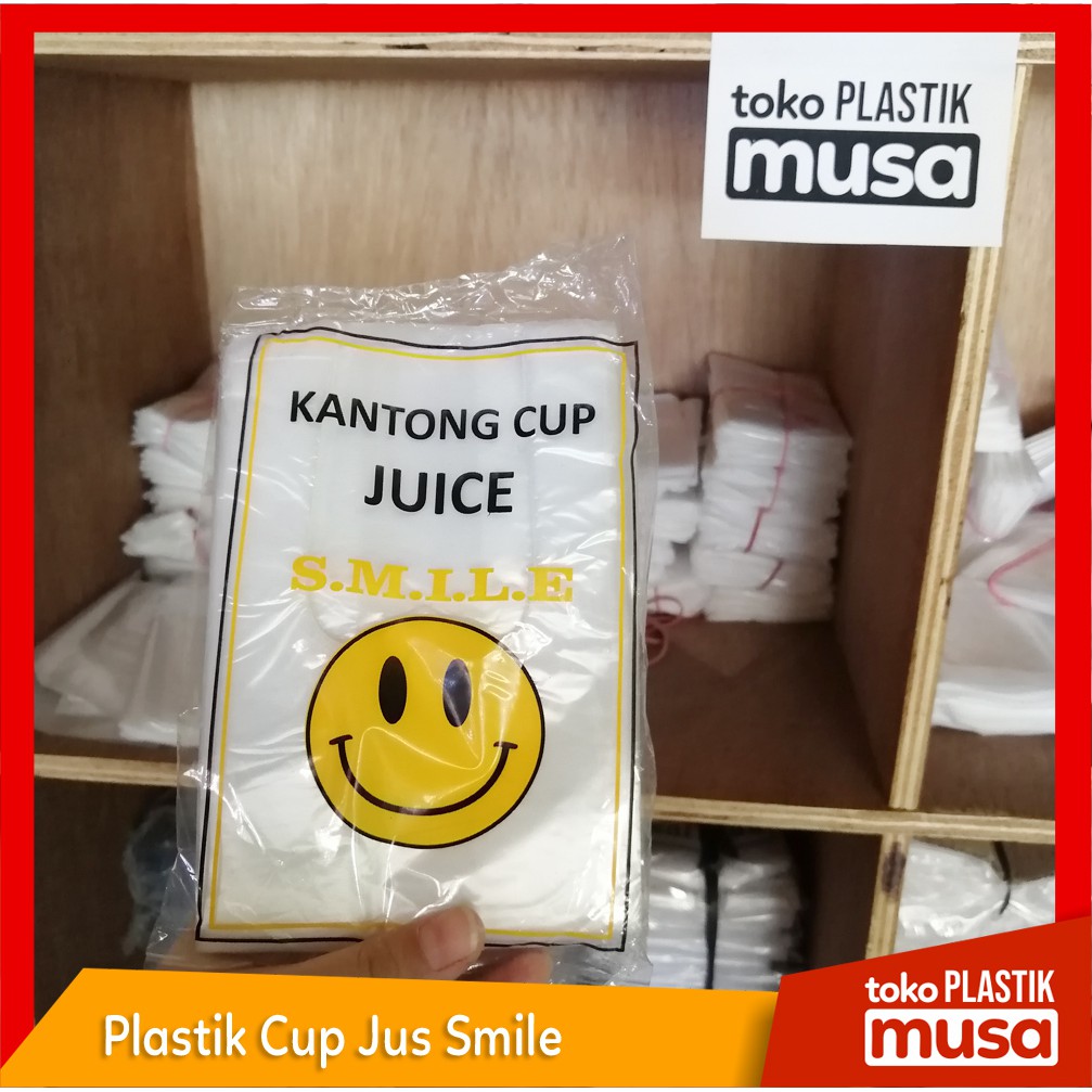 Kantong Kresek Plastik Cup Jus dan Minuman SmileBahan HD beningKemasan economisMerek smileBIasa dipakai untuk jualan minuman sebagai tempa