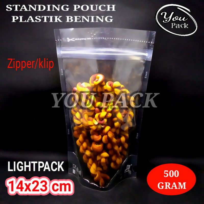 STANDING POUCH LIGHTPACK 1423 PLASTIK KEMASAN BENING 500 GRAMPlastik Standing Pouch Sangat cocok untuk kemasan produk Anda dan UKM.Kemasan produk KpackBisa order eceran/bijianHarga diatas untuk 1 pcs1 pack isi 100 pcsBahan Nylon + PPUkuran 14x23 cmTebal 75 mikronMemiliki Banyak kelebihan dari Standing pouch bahan yang lain.Sangat lentur.Jadi bisa untuk mengemas :Makanan KeringMakanan basah Untuk kemasan 500 gram(dasar ukuran menggunakan takaran gula pasir)size lain yang tersediasize 9x15x2,6cm kapasitas 150 gramsize 13x20,5x3,5cm kapasitas 250 gramsize 14x23x4,1cm kapasitas 500 gramsize 18x29x5,3cm kapasitas 1100 gramsize 22x29x6cm kapasitas 2200 gramCara mengukur kemasan yg dibutuhkan:1.Pengukuran kemasan kami menggunakan beras dan gula pasir dengan granule/butiran berat. Jadi bentuk bubuk akan punya volume lebih besar dari bentuk volume gula. Jadi membutuhkan kemasan lebih besar untuk bubuk dan biji dengan berat yang sama.2. Barang yang sudah dibeli tidak dapat dikembalikan ataupun ditukar. Jadikan pastikan dengan benar ukuran mana yang akan Anda