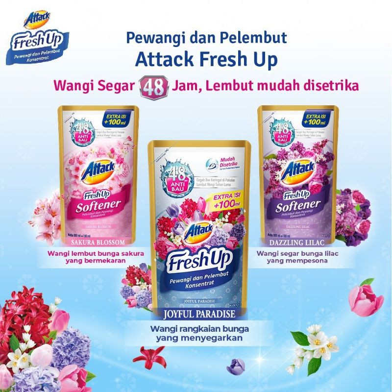 Flash Sale Perlengkapan di Kabupaten Pati Attack Fresh Up Softener Sakura Blossom Dazzling Lilac & Joyful Paradise 700+100 Ml dari Widiw.shop Kota Jakarta Selatan
