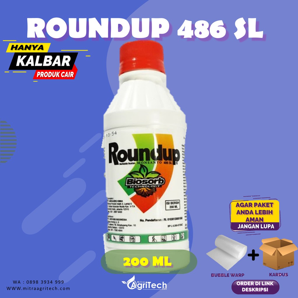 Roundup adalah bahan kimia yang digunakan untuk membasmi rumput liar / ilalang dan berbagai jenis gulmaBerikut beberapa keunggulan dari roundup yang disunting https://sawitindonesiacom/rubrikasi-majalah/ha... :- Tahan hujan 1-2 jam setelah penyemprotan- Daya basmi lebih unggul dalam jangka waktu lama- Teknologi biosorb yang dipatenkan, tidak bisa ditiru oleh kompetitor lain- Spektrum pengendalian yang luas- Lebih iritCara penggunaan :Campurkan 2-4 tutup botol ke dalam 1-2 Liter air / 100 ML ke dalam 10-13 Liter Air.Demi keamanan packing agar isi paket tidak rusak saat diterima oleh pembeli, kami menyediakan plastik bubble dan packing kardus tambahan untuk tambahan packing. ORDER DILINK DIBAWAH INI :BUBBLE WARP :https://shopee.co.id/product/4579170/3335251367/KARDUS:https://shopee.co.id/product/4579170/4535155568Apabila item ini tidak add to cart jangan salahkan kami apabila ada barang yg penyok, pecah atau rusak saat perjalanan pengiriman.Jika tidak menambahkan packing tambahan ini kami tidak bertanggung jawab jika barang pecah atau rusak saat diterima. Membeli berarti menyetujuireseller wel