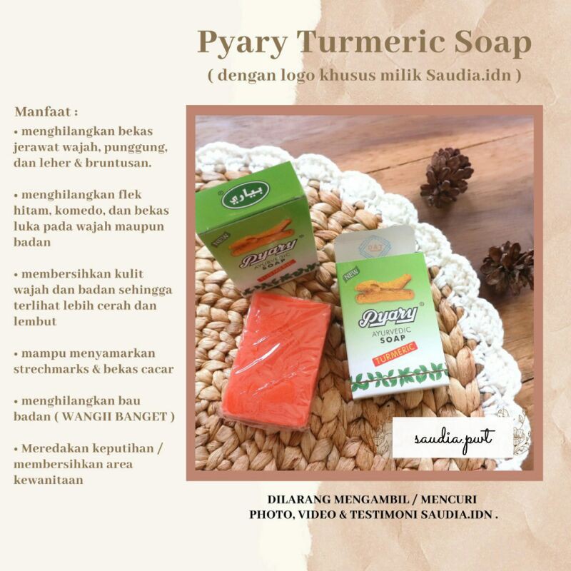 Bismillah...BEST SELLER Sabun pyary ❤️ -Sabun ini terbuat dari bahan alami seperti : Kunyit, minyak kelapa dan minyak cucumin.-Sabun ini juga mengandung glycerin sehingga mampu mencerahkan kulit, INGAT! Mencerahkan yah ukhty, bukan memutihkan -Manfaat dari sabun ini : • menghilangkan bekas jerawat wajah, punggung, dan leher• menghilangkan flek hitam, komedo, dan bekas luka pada wajah maupun badan• membersihkan kulit wajah dan badan sehingga terlihat lebih cerah dan lembut• mampu menyamarkan strechmarks• menghilangkan bau badan ( WANGII BANGET )• meredakan keputihan / membersihkan area kewanitaan-COCOK UNTUK SEMUA JENIS KULIT DAN DAPAT DIGUNAKAN OLEH IBU MENYUSUI DAN IBU HAMIL Note: PRODUK YANG KAMI JUAL ORIGINAL DIKIRIM DARI SAUDI, HALAL DAN T